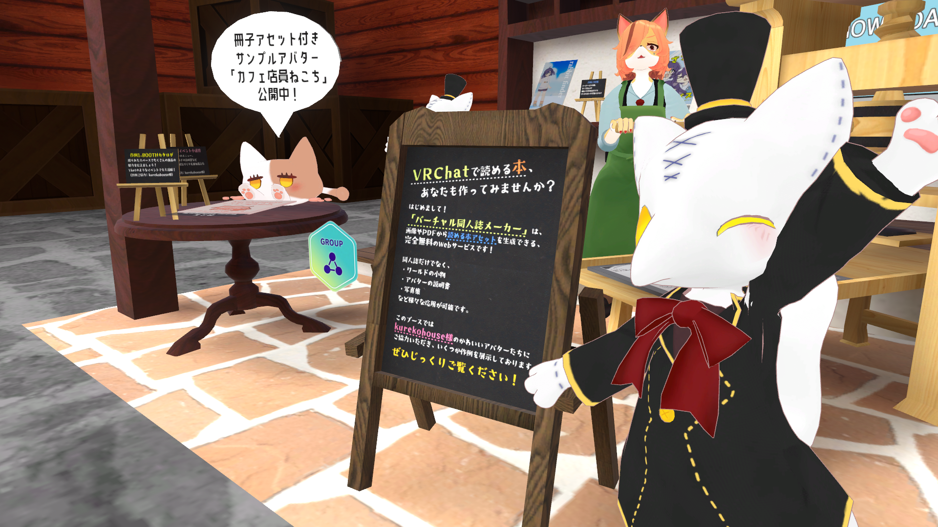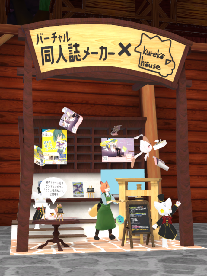今回はくれこはうす様との共同出展であり、かわいいアバターたちと一緒にワールド冊子ギミックを体験いただけます!